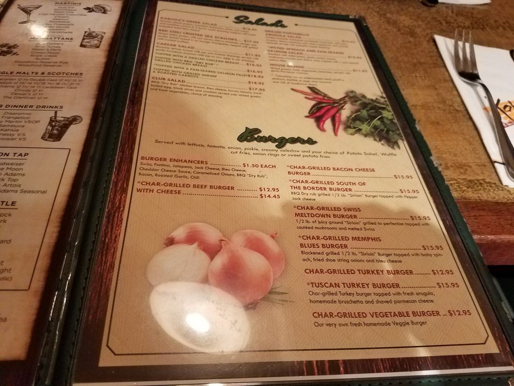 Char-grilled turkey burger topped with fresh arugula, homemade bruschetta and served Parmesan cheese. Served with lettuce, tomato, onion, pickle, creamy coleslaw and your choice of potato salad, waffle cut fries, onion rings or sweet potato fries.
